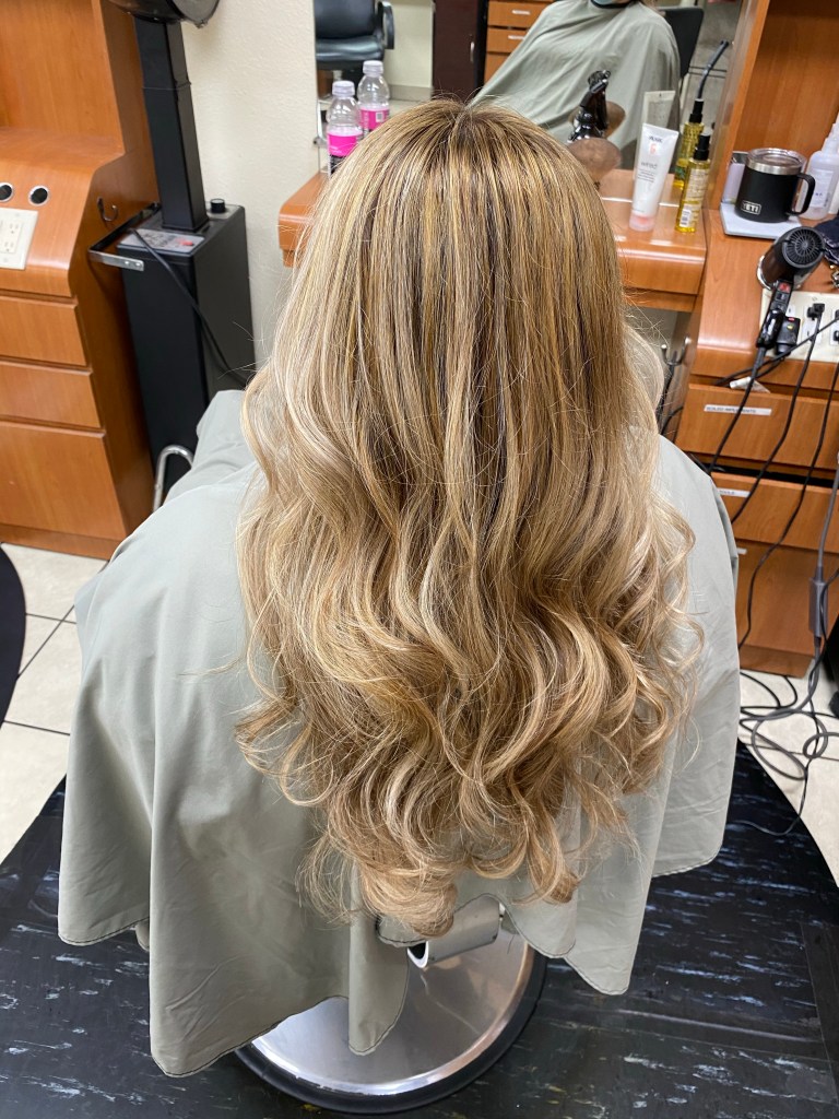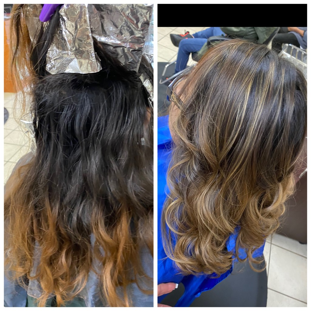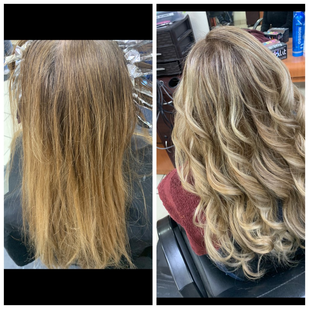 Process time: 3hrs, Virgin hair, Balyage, haircut & blow dry Process time: 6hrs & 1/2